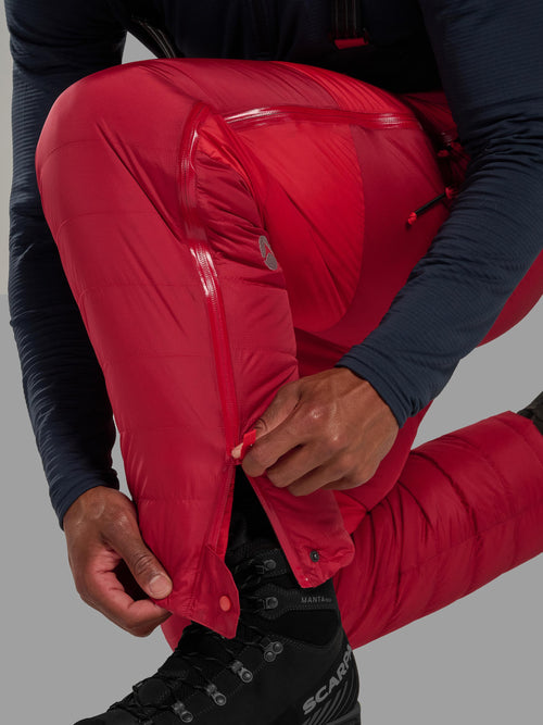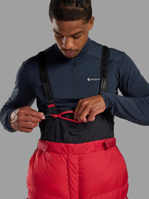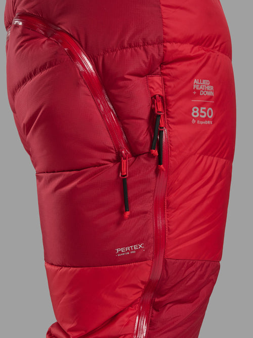 The Apex 8000 Down Salopettes are filled with ExpeDRY™ Goose Down, which has non-toxic gold particles bonded to it for fast-drying performance and industry-leading warmth. The chemical-free technology works because gold particles vibrate water molecules, just like heat does, to speed up evaporation to a rate faster than the water absorption rate of down, while managing moisture from the body.