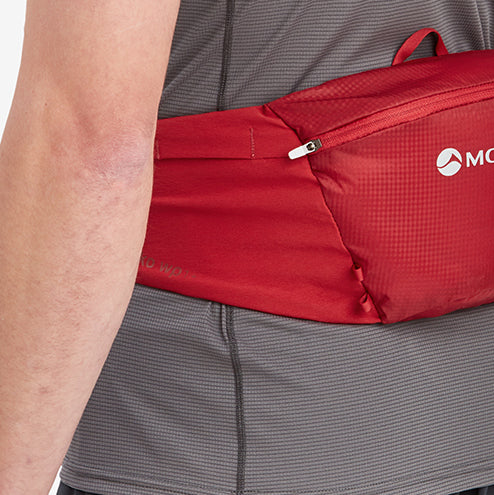 The Montane Gecko Waist Pack 1+ securely hugs your waist with a stretch fit that limits movement and ensures comfort on the trail. The central compartment and two side stretch pockets have enough space for food, hydration and essential kit on short to moderate trail runs. A great piece of kit for runners seeking storage on the move.