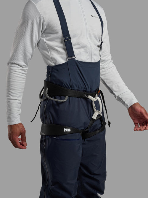Vital features such as our lightweight bib, a YKK aqua guard zipped thigh pocket and adjustable reinforced hems are carefully designed with gear compatibility in mind, working collectively to maximise functionality so you can focus on your performance on the mountain.