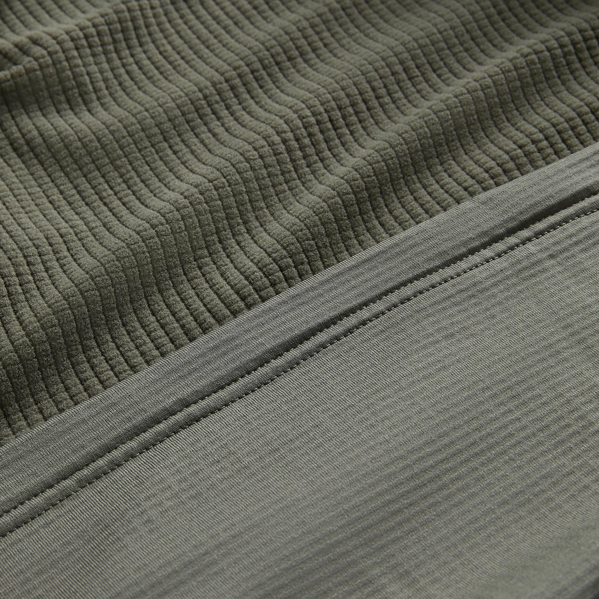 When you want warmth that doesn’t weigh you down, the key is intelligent design. The THERMO GRID FLEECE has a brushed back and gridded format, which both trap more warm air close to the body without having to increase the depth of the fabric. The fleece also works to draw moisture and excess heat away from the body and out into the air, for advanced breathability.