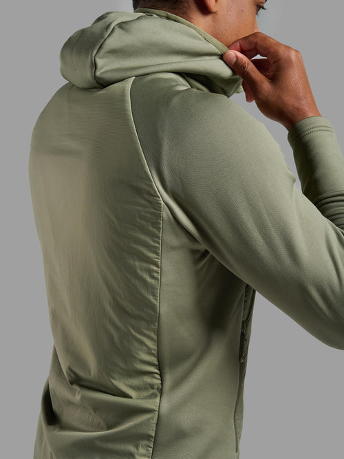 Hybrid in design, the Dynamic Insulation provides thermal performance throughout the main body, with THERMO Stretch brush back fleece sleeves for freedom of movement and excellent moisture management.