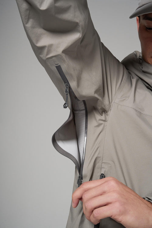This is achieved through the windproof, non-porous hydrophilic membrane that transports water vapour and moisture away from the body, an effect that increases in strength as you work harder. The 3-layer construction sandwiches the waterproof membrane between a 100% recycled, 22D Ripstop nylon face fabric and the lining, for improved durability and next-to-skin comfort.