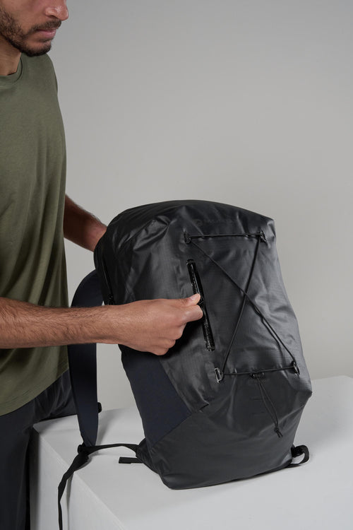 Built for all‑conditions-adventure, the Montane Transition 28L Pack offers durable, weather‑resistant performance with the space and organisation needed for longer days outdoors. Constructed from RAPTOR Pro Lite fabric, it delivers lightweight yet hard‑wearing protection against the elements. A clamshell zipped design and minimal seam construction enhance weather resistance and durability, while a bonded, water‑resistant front pocket with YKK Aquaguard® zip provides secure, easy‑access storage for essentials. Comfort is ensured through bonded back pads that resist water absorption, and multiple carry options including external bottle pockets, gear attachment points, and a removable organiser pouch make this a versatile, dependable pack for fast‑moving adventures.