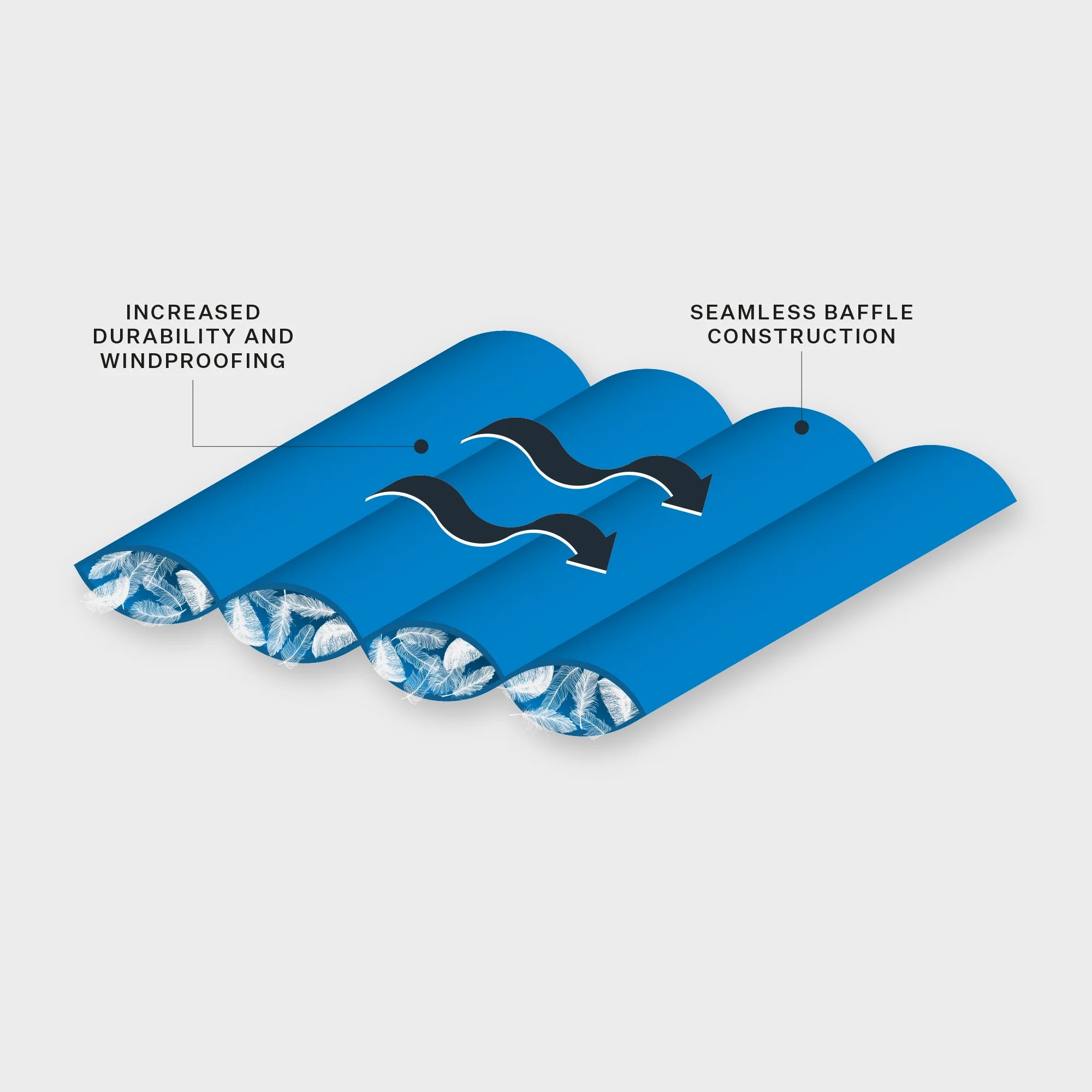 Compared to the down-jacket competition with its additional weight, vulnerability to wind and compromised durability, the stitching and lining-free Pertex® 3D WEAVE’s baffle chambers are state of the art. They are intelligently woven into a single lightweight and soft fabric, which is engineered to allow the down to fully loft and provide maximum warmth with reduced weight.