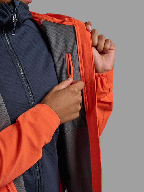 Designed to move with you, the jacket features offset, minimal seams and double harness, pack compatible pockets for effortless storage and unrestricted movement. It’s the ideal choice for technical hikes and climbing adventures.