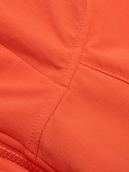 Constructed from GRANITE Stretch fabric, a stretch double weave textile that's coated in fluorocarbon-free DWR, this softshell jacket provides exceptional wind resistance and water repellency. Its adjustable hood and hem offer a customisable fit, giving you optimal protection and ventilation in any weather conditions.